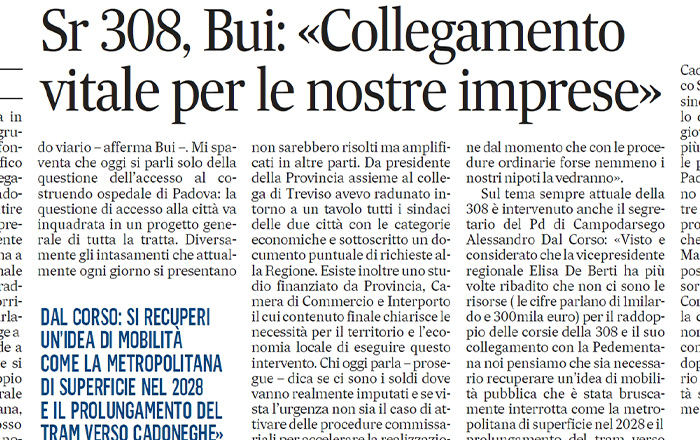 - Sr 308, Bui: «collegamento vitale per le nostre imprese»