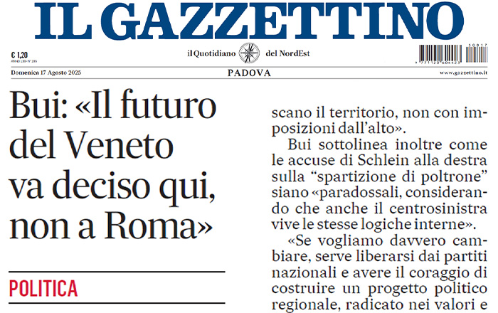 - Bui: “Il futuro del Veneto va deciso qui, non a Roma”