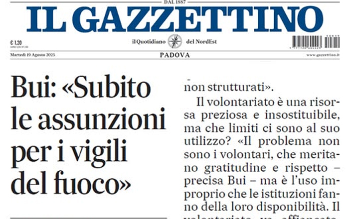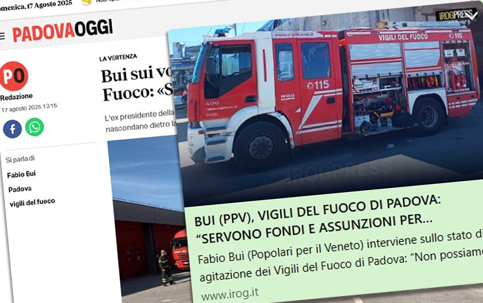 - Bui (Popolari per il Veneto), Vigili del Fuoco di Padova: “Servono fondi e assunzioni per garantire la sicurezza della città”