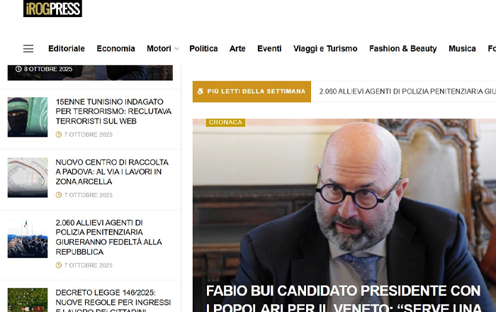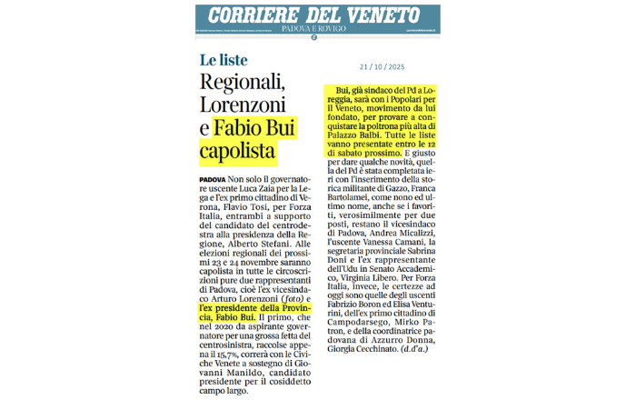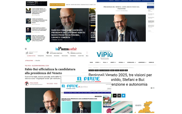 - FABIO BUI FIRMA COME CANDIDATO PRESIDENTE DELLA REGIONE VENETO: NUOVO PROGETTO AUTONOMIA, LAVORO E COMUNITA’
