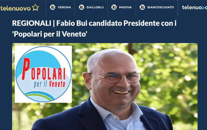 - Popolari per il Veneto Fabio Bui in pista per la presidenza