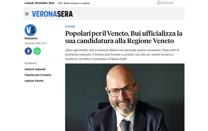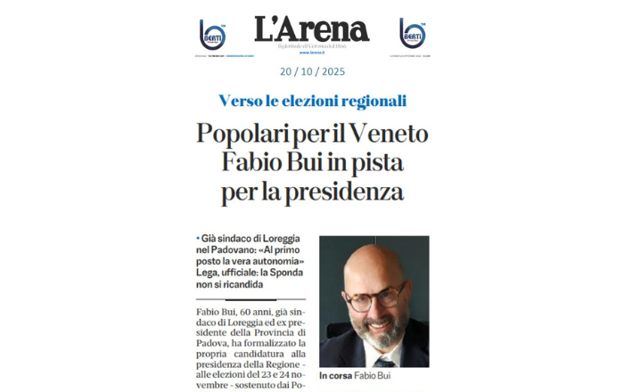 - Fabio Bui candidato presidente con i Popolari per il Veneto: “Serve una nuova stagione di protagonismo per il nostro territorio”