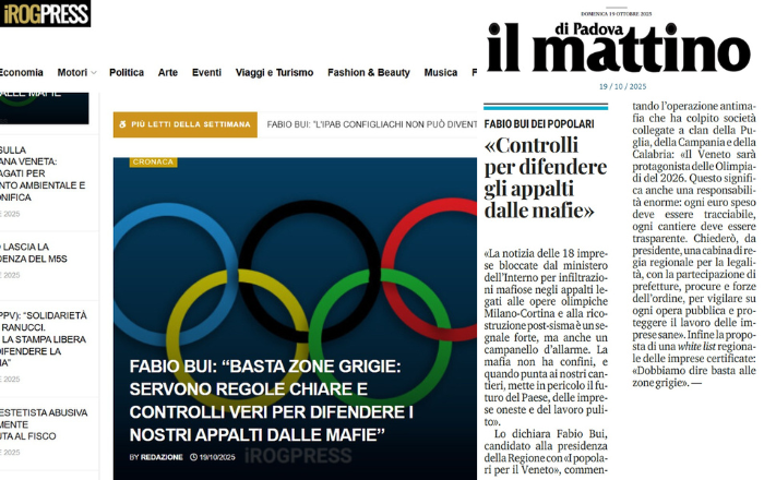 - FABIO BUI: “BASTA ZONE GRIGIE: SERVONO REGOLE CHIARE E CONTROLLI VERI PER DIFENDERE I NOSTRI APPALTI DALLE MAFIE”