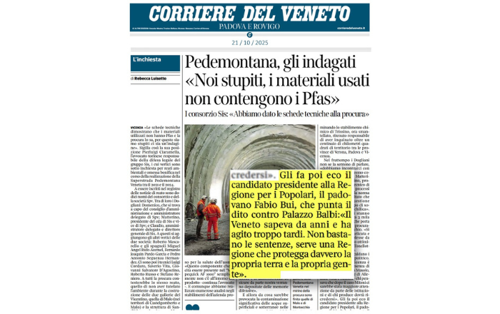 - Pedemontana, gli indagati «Noi stupiti, i materiali usati non contengono i Pfas»